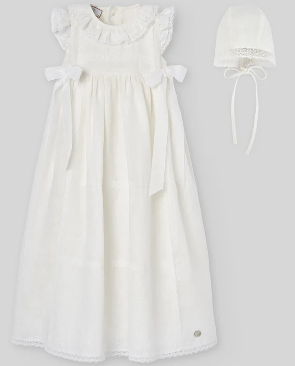 Confeccionado en lino con bordados sutiles y acabado artesanal, ideal para ceremonias y eventos especiales.
