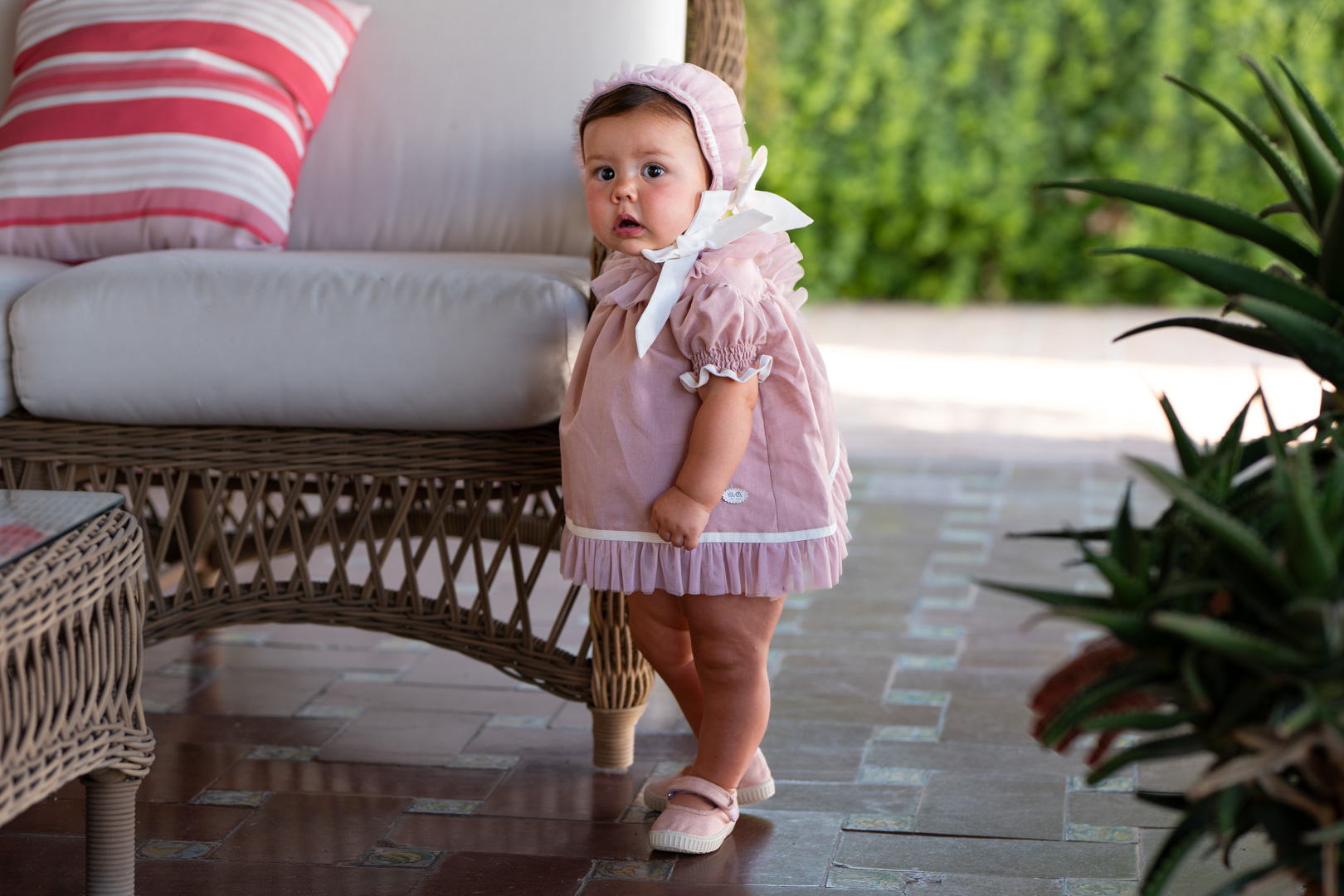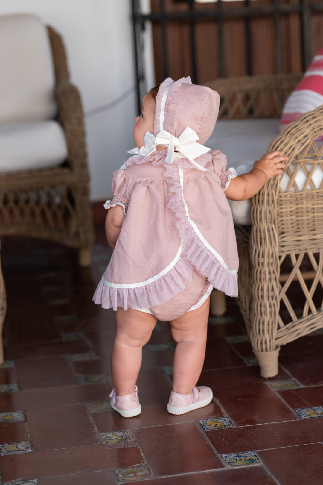 Jesusito de bebé en color lino rosa con braguita y capota a juego.