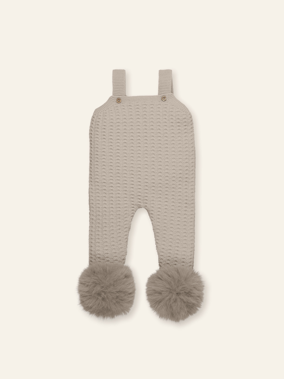 Envió Gratuito a partir de 50€Peto de punto en color nuez con pompones de pelo natural.