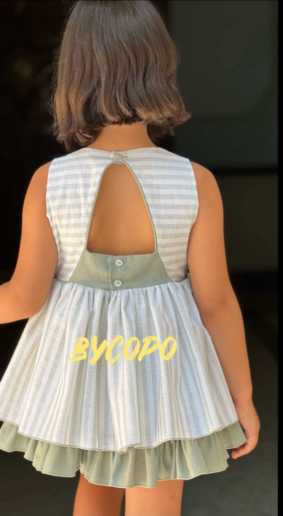 Envió Gratuito a partir de 50€Vestido tejido de rayas color verde seco, tiene talle delantero liso y espalda descubierta.